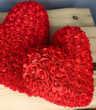 - Cœurs et nounours géants garnis de fleurs stabilisées : véritables symboles d’amour et de tendresse.